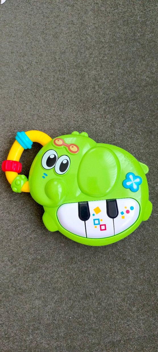 Renkli, fil şekilli eğitici oyuncak. Piyano tuşları ve taşıma sapı bulunur. Çocukların ilgisini çeker ve eğlendirir.