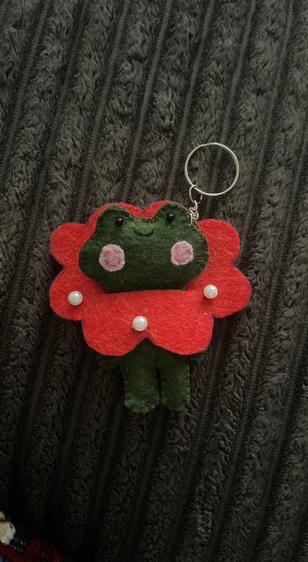 Renkli, fırfırlı ve inci detaylı kurbağa figürlü anahtarlık, gotik, bohem ve retro tarzları bir arada sunar.