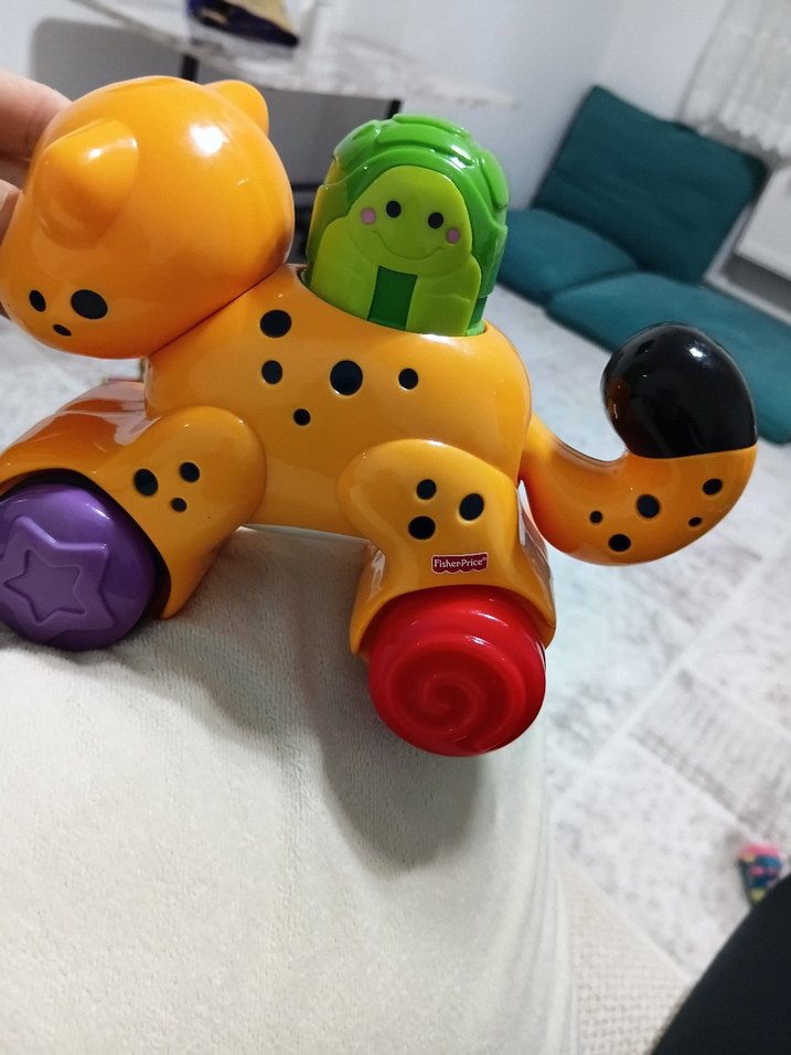 Renkli Fisher-Price markalı oyuncak leopar, hareketli bas çek hareketli kuyruğunu sallayan oyuncak..hiç bir sorunu yok çatlak çizik leke yok video atarım isterseniz toplu alımda uygun yaparım mağzadakilefen farksızdır