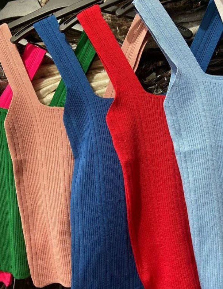 Renkli Fit Örme İnce Askılı Kadın Atlet