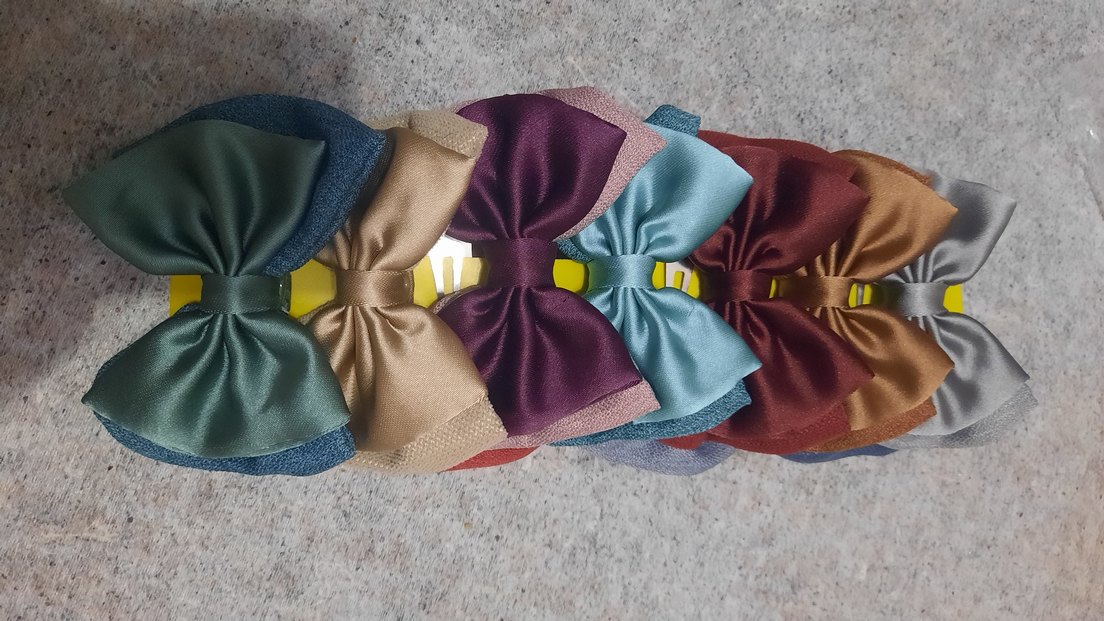 Bohem tarzda, fiyonk detaylı renkli çocuk saç tokaları, modaya uygun görünüm için ideal.