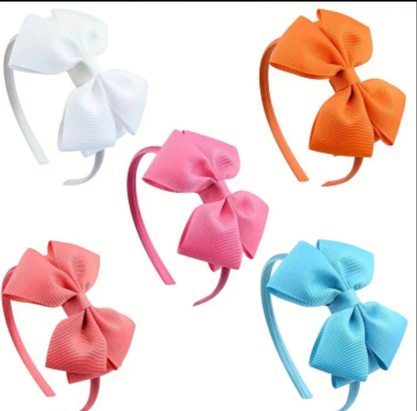 Çeşitli renklerde büyük fiyonk detaylı, desensiz ve sade çocuk taçları. Pop kültür tarzı sunar.