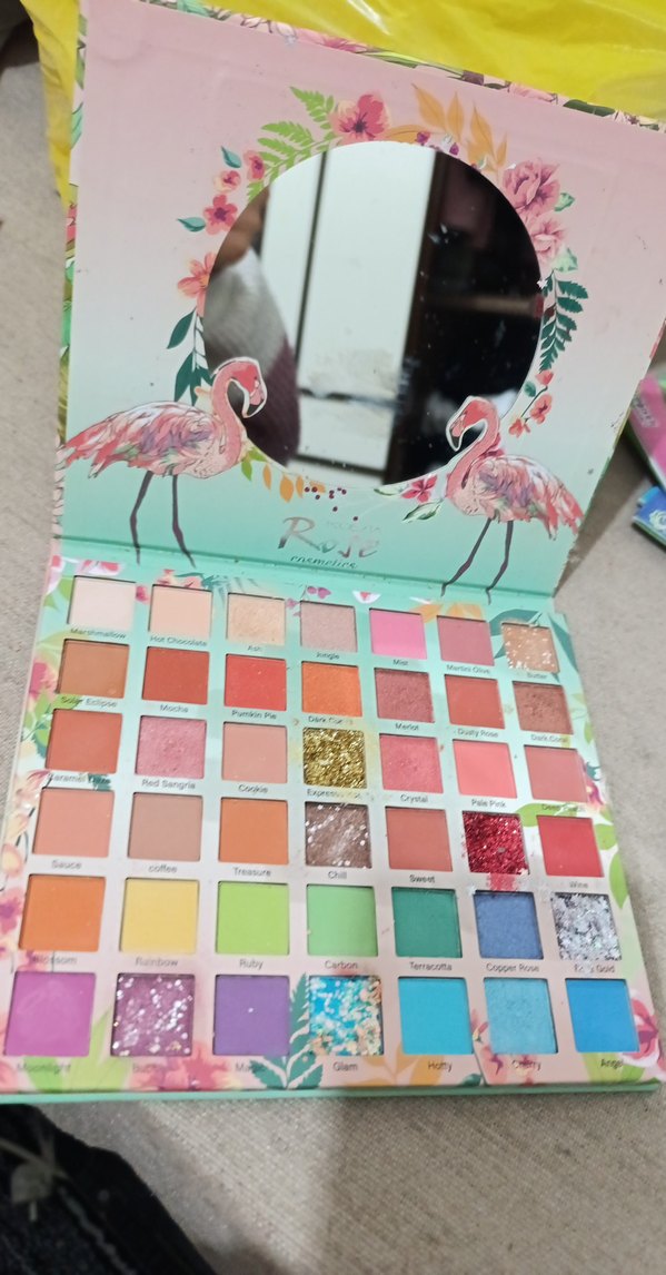 Mat ve simli bitişlere sahip canlı ve açık renklerin karışımı olan göz farı paleti, flamingo temalı kutusu ve aynasıyla dikkat çekiyor.
