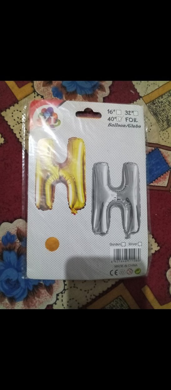 Parti süslemeleri için 40 cm boyunda renkli H harfi folyo balon.
