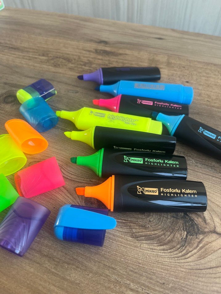 Çıkarılabilir kapaklı, çeşitli canlı renklerde fosforlu kalem . Önemli metinleri işaretlemek için uygundur. ️