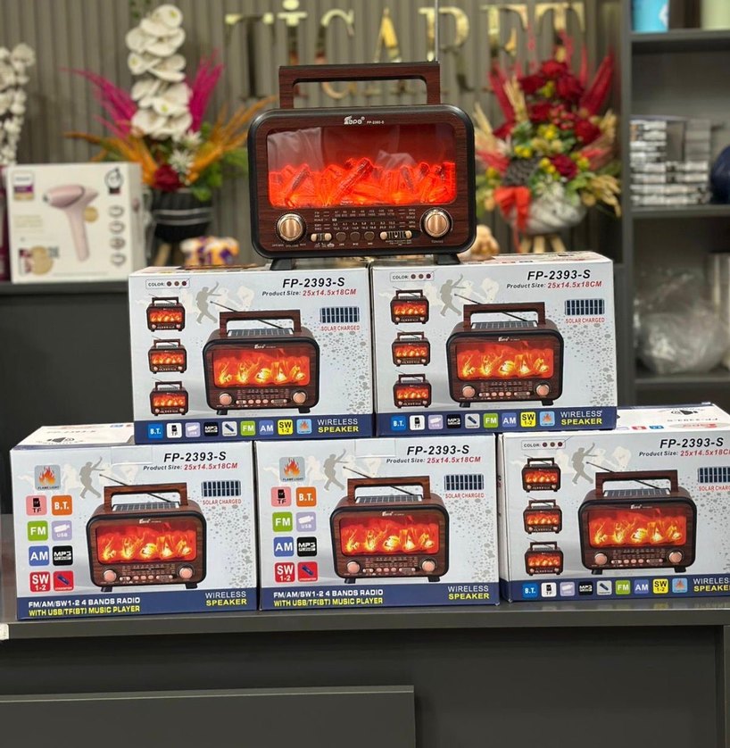 FP-2393-S müzik sistemi, renkli tasarıma sahip olup AM/FM/SW radyo bantları, Bluetooth, USB ve TF kart desteği sunar. Kablosuz hoparlör olarak da kullanılır.