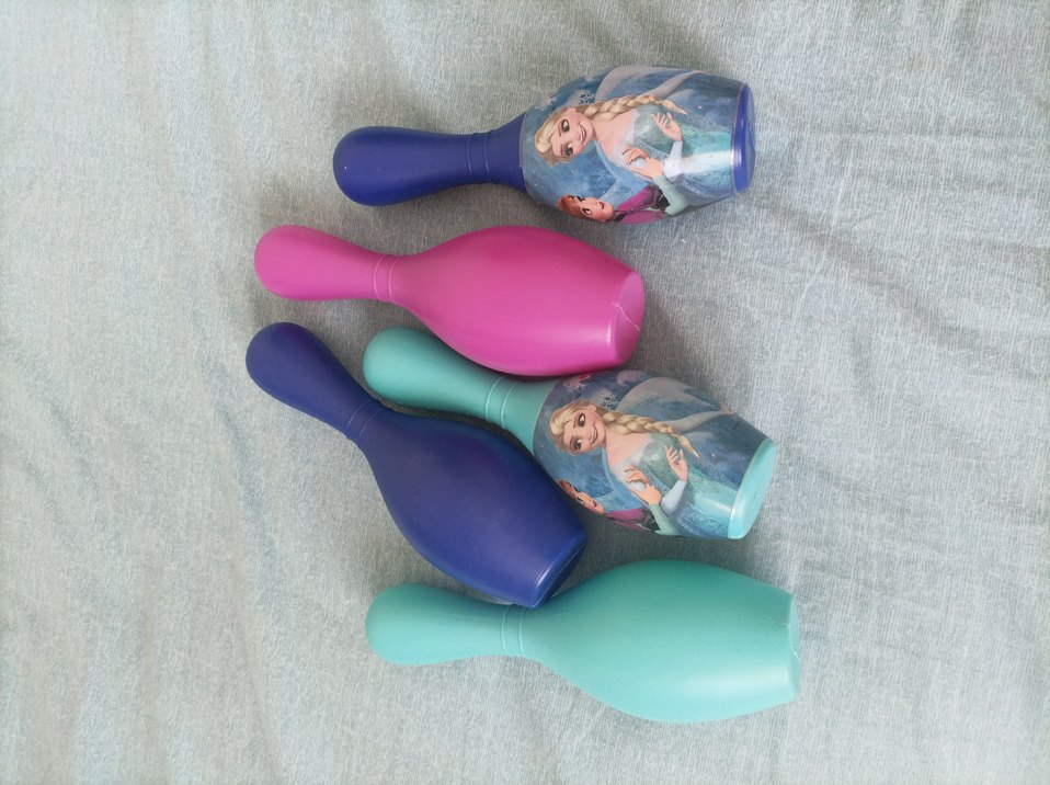 Frozen karakterli baskılı, parlak renklerde ve pürüzsüz plastikten yapılmış renkli su oyuncağı bowling seti.