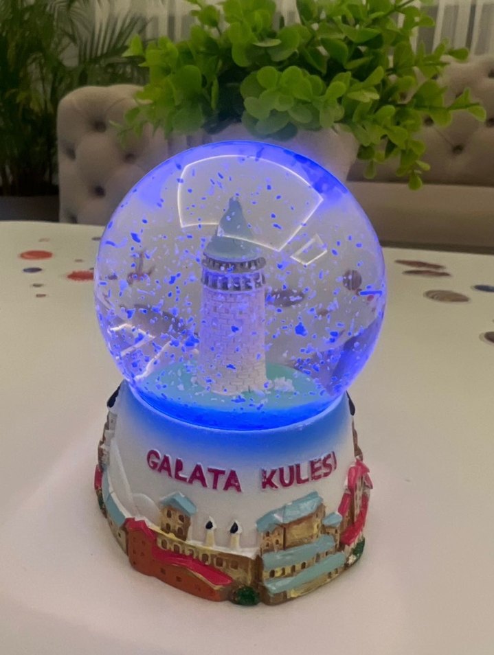 İkonik Galata Kulesi figürünün bulunduğu, renkli ve mavi ışıklı kar küresi. Alt kısmı detaylı yerel yapılarla süslenmiştir. ❄️sıfır ışıklı orta boy çok görsel