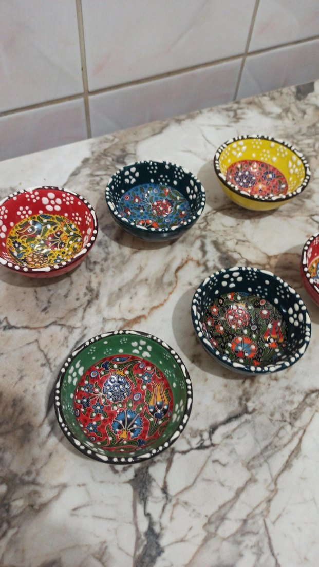 Renkli geleneksel desenlere sahip, el yapımı seramik kaseler, dekoratif kullanım için uygundur. sorunsuz tertemiz ürünler ihtiyaç fazlası satıyorum ikili fiyattır