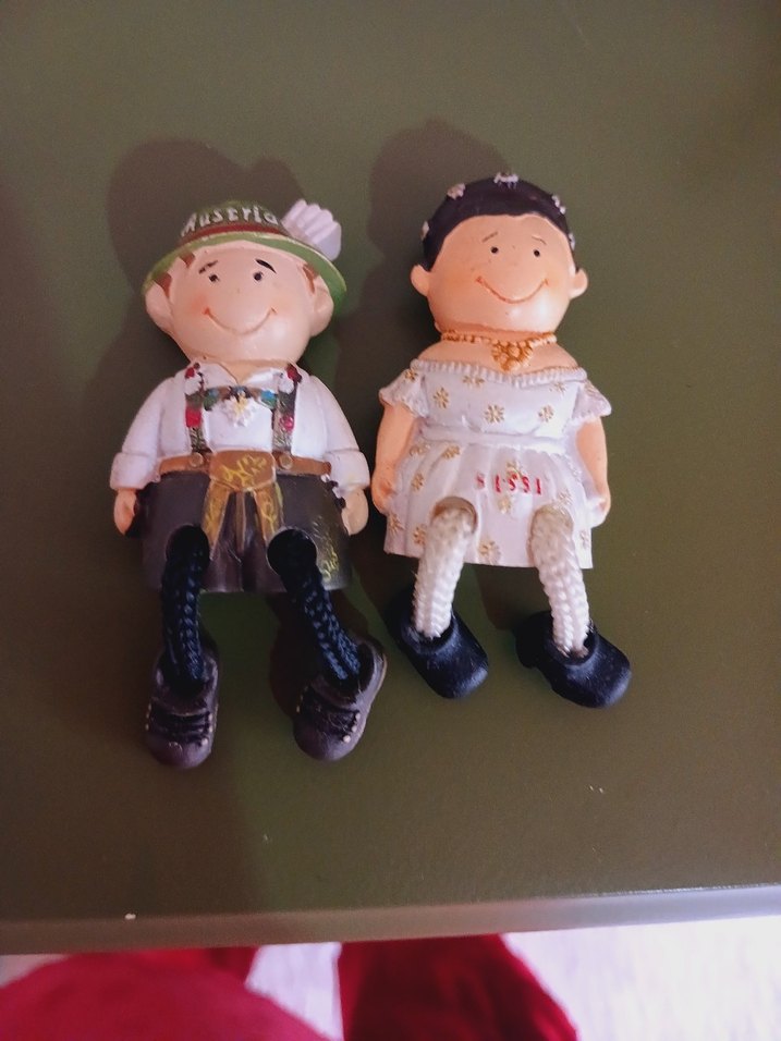 Detaylı kıyafetlere ve neşeli ifadelere sahip iki renkli geleneksel figür. Dekorasyon için uygun.