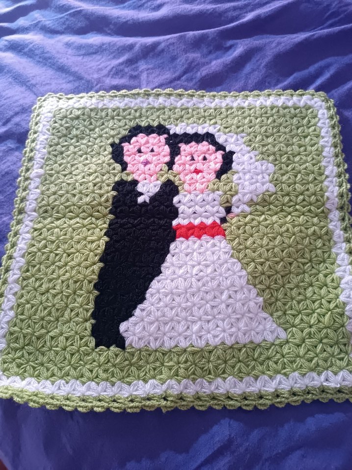 Gelin ve damat desenli, dokulu yapıda renkli banyo süngeri.