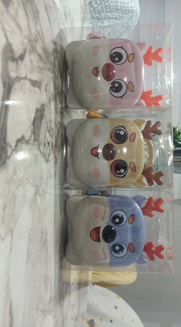 Renkli geyik yüzü figürlü çocuk ürünleri. Büyük gözler ve boynuz detaylarıyla dikkat çeker. adet 220 TL
