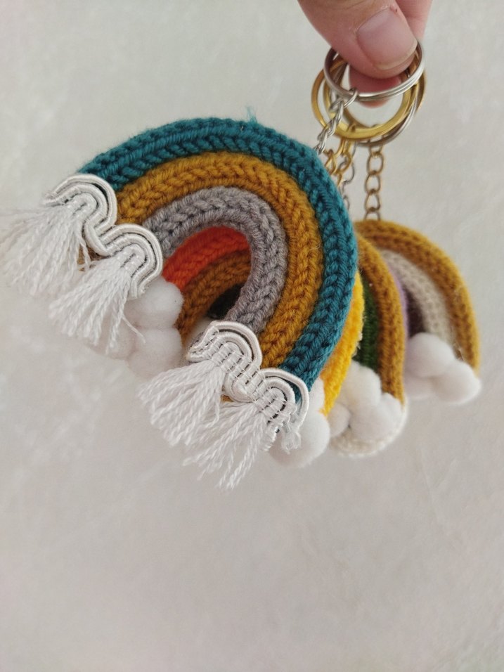 Renkli Gökkuşağı Modelli Tricotin Örgü Bohem Anahtarlık