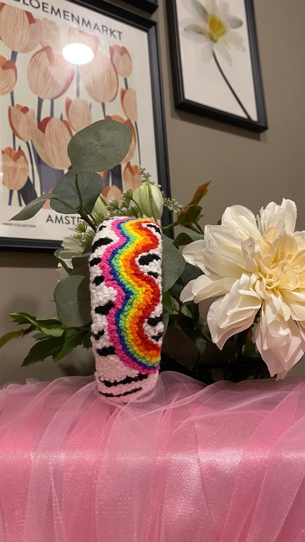 Canlı renklerde, desenli, gökkuşağı dalgaları ve siyah detayları olan bohem taç. Siparişe özel punch tasarımlar • İsteğe göre renk, yazı ve desen yapılır • Evine/hediyene özel tasarımlar için DM ✨ • El emeğiyle hazırlanan, • Sınırlı sayıda, sevgiyle üretildi Kadın- çocuk tercih edebilirsiniz