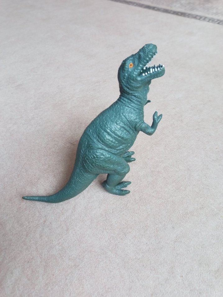 Detaylı dokulu, turuncu gözlü renkli gri dinozor aksiyon figürü. Yaratıcı oyunlar için uygun. boyu yaklaşık 16 cm