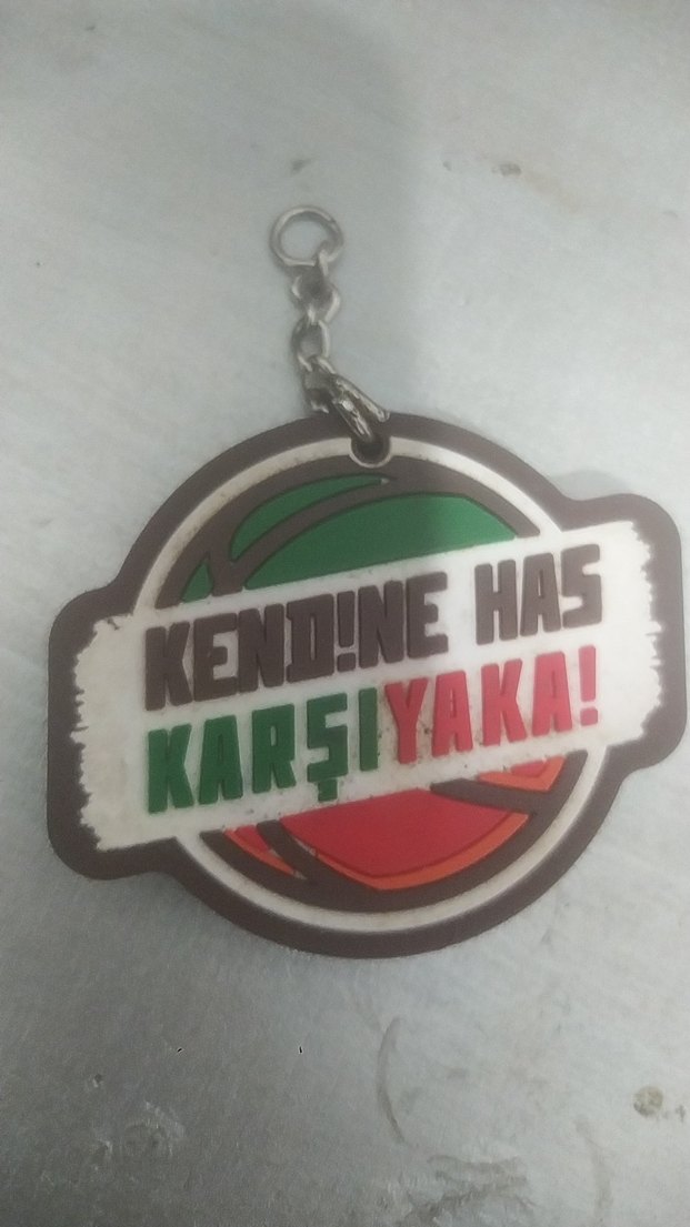 Renkli yeşil anahtarlık, "KARSIYAKA!" ve "KENDINE HAS" yazılarıyla grunge punk tarzını yansıtır. Aynı zamanda açacak .