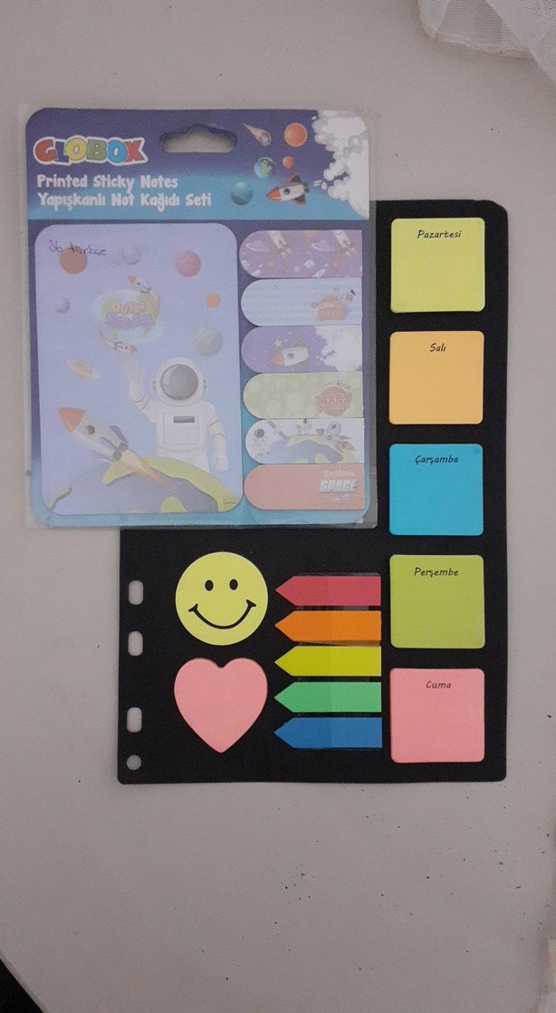 Haftanın günleri ve farklı şekillerde renkli yapışkan notlar içeren set, düzenli ve eğlenceli kullanım sağlar. ️İkili fiyatıdır.