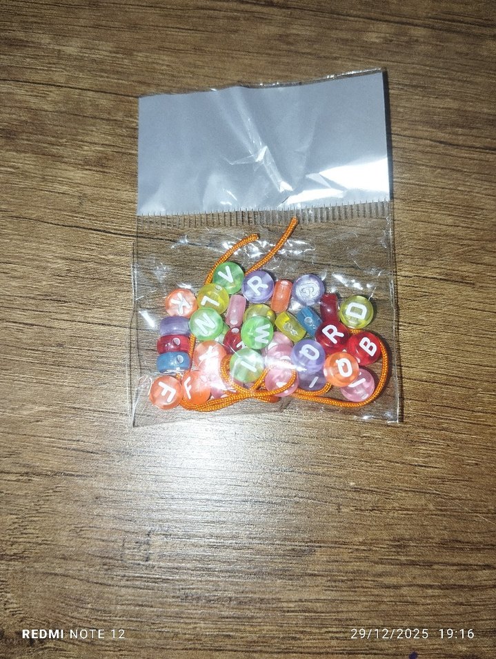 Çeşitli renklerde harf boncuklarından oluşan renkli bileklik yaratıcı tasarımları için uygun.