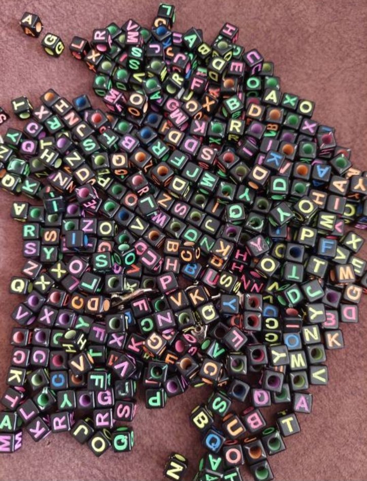 Çeşitli harflerin bulunduğu küçük küp şeklinde, koyu renkli çok renkli tırnak süsleri, yaratıcı tırnak tasarımları için uygundur.