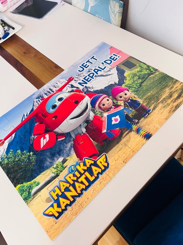 Harika Kanatlar karakterlerinin yer aldığı renkli ve canlı çok renkli çocuk puzzle'ı. Üzerinde 'JETT NEPAL'DE!' yazısı bulunur. Dev puzzle. Tüm parçaları tamdır.iade yoktur.