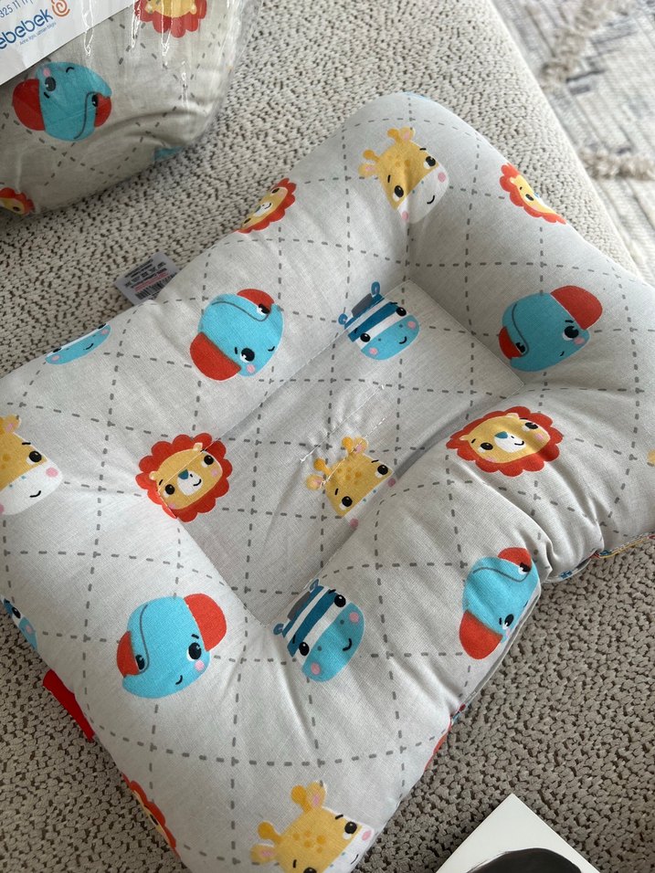 Yumuşak sentetik kumaştan, renkli aslan, fil ve zürafa desenli çocuk yastığıdır. Çocuklar için rahat destek sağlar.