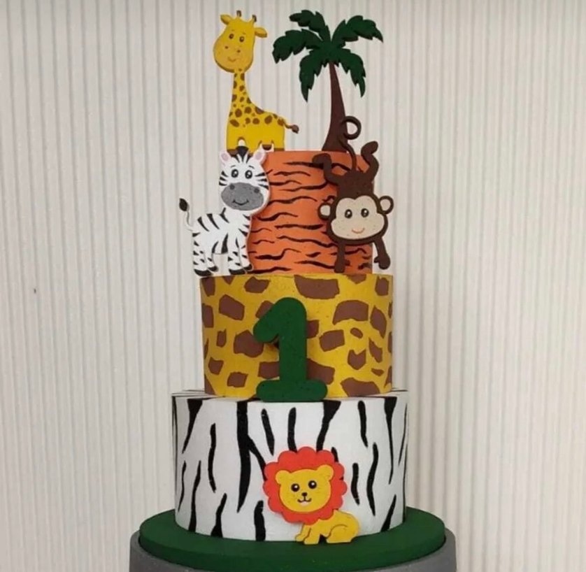Renkli hayvan figürleriyle zürafa, zebra, maymun ve aslan içeren orman temalı çocuk yapbozu. KİRALIK