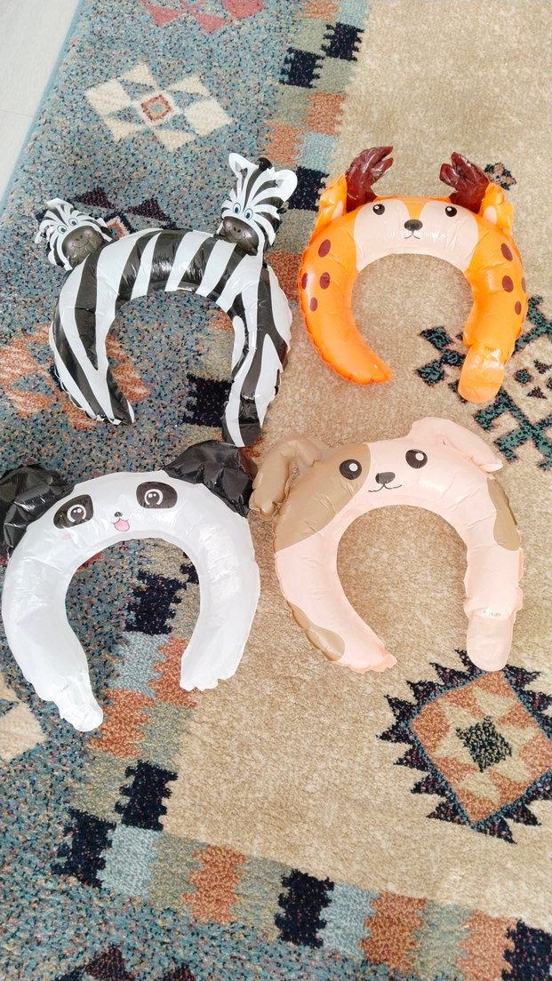 Zebra, geyik, panda ve köpek figürlü renkli kedi balon taç .