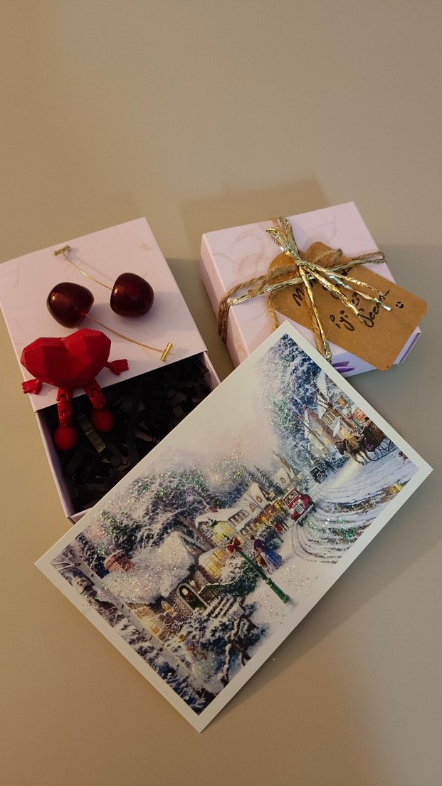 Kiraz küpe Kalp obje ve nostaljik kartpostal hediyesi ile birlikteee ve tabiki şık paketli kutusu ile... Yeni yıl hediyesi, doğum günü hediyesi veya içimden geldi hediyesi... Ya daa kendinize bir hediye