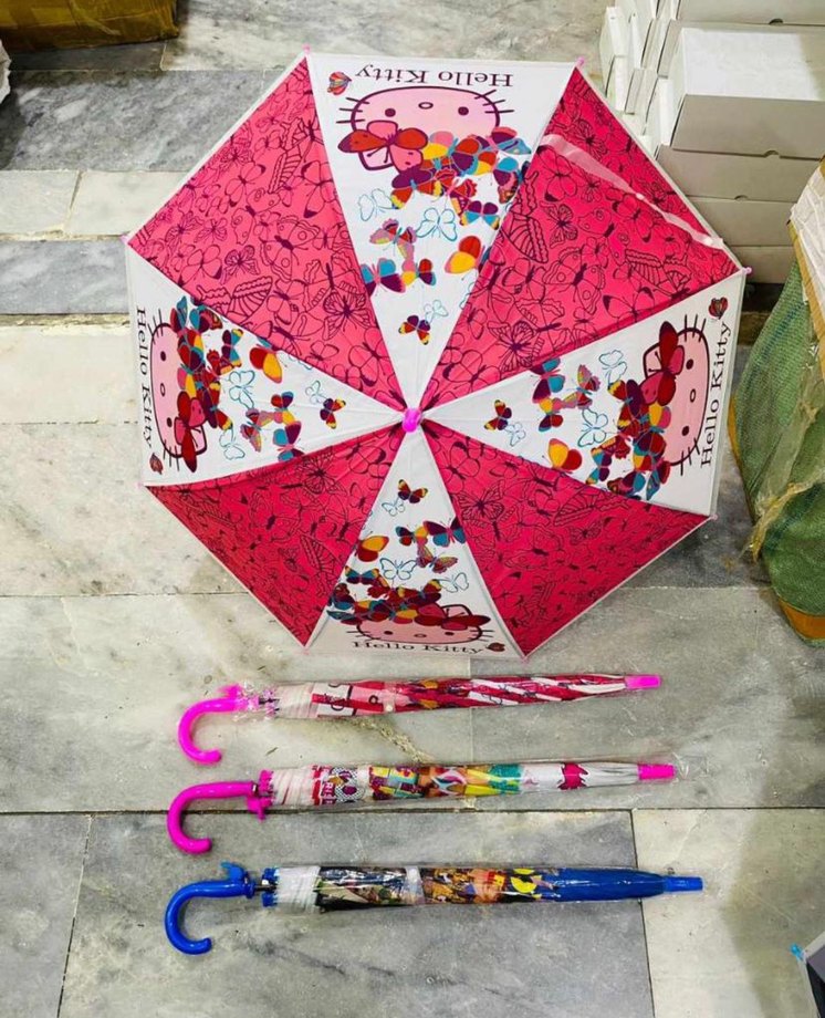Pop kültür ve sokak stili etkili, Hello Kitty desenli ve püsküllü renkli kadın şemsiyesi.