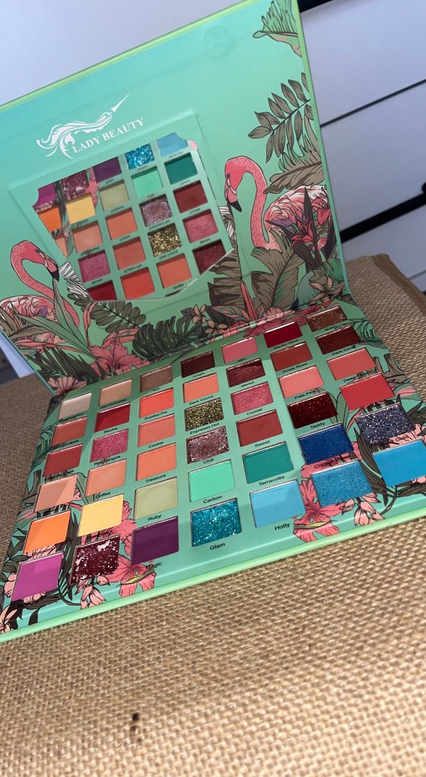Holiday göz farı paleti, tropikal flamingo ve bitki desenli canlı kapak tasarımına sahiptir. Açık ve kamel tonlarıyla çeşitli makyaj seçenekleri sunar.