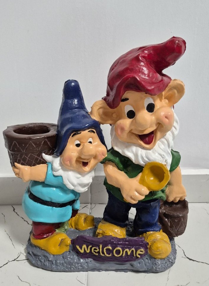 Renkli şapkalı iki neşeli cücenin Seramik üstü akrilik boya uygulanmıştır. Ölçü En :32 cm Boy :43 cm