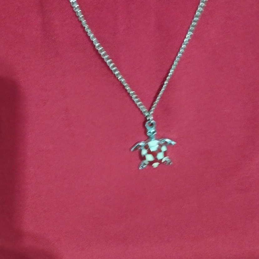 Kısa uzunlukta, renkli turkuaz zincir vedeniz kaplumbağası figürlü kolye, bohem tarz için uygun.