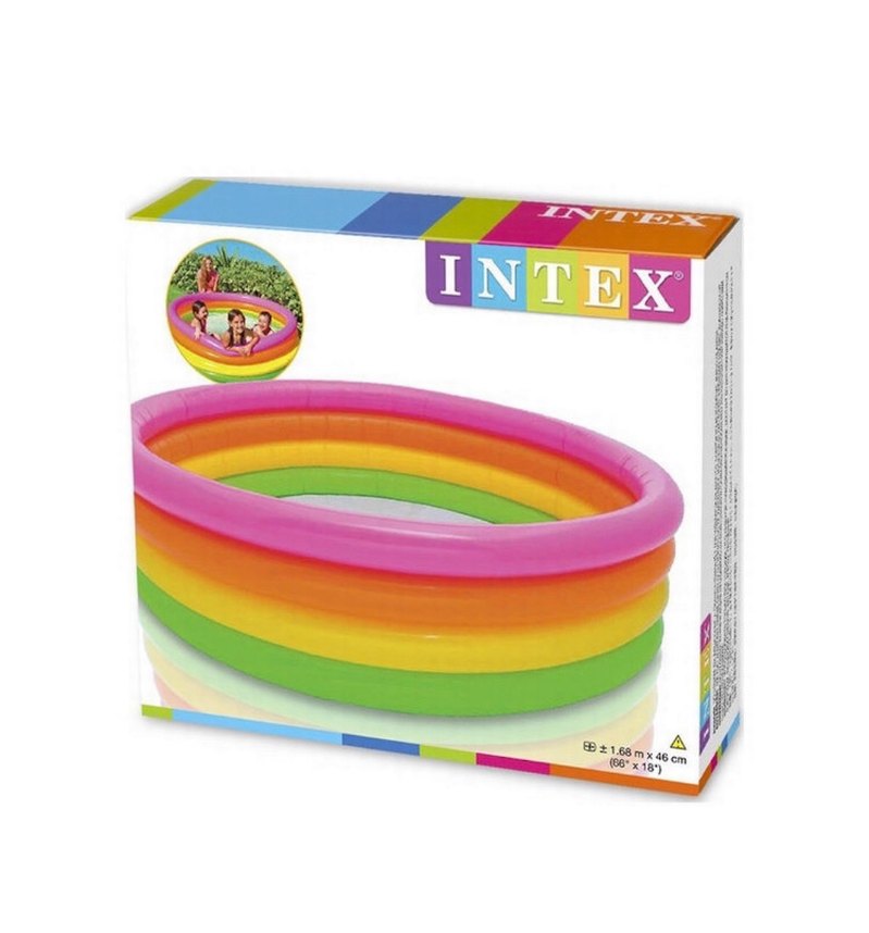 Intex markalı, SON FİYAT SIFIR ÜRÜN 1.68/46 CM 4 KATMANLI HAVUZ canlı renklerde çok renkli halkalardan oluşan şişme çocuk havuzu.