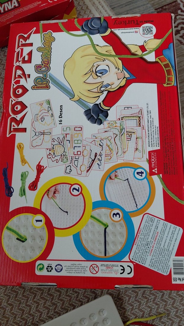 Bu renkli eğitim oyuncağı 16 desen kartı ve çeşitli renkli ipler içerir. Delikli kartlara ip geçirme becerisi kazandırır.