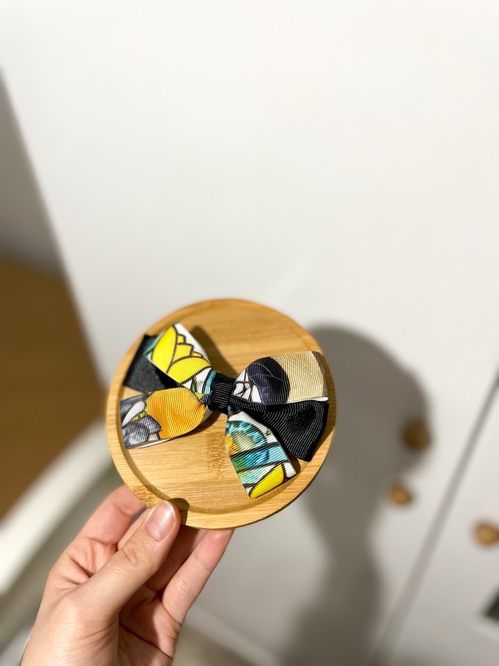 İpek dokulu, çok renkli fiyonk detaylı, karanlık tonlarda bohem tarzda Paris esintili saç aksesuarı.