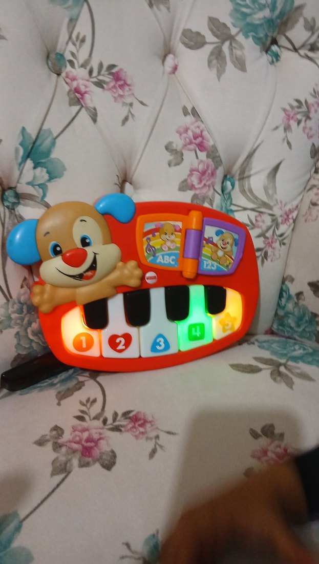 Renkli ışıklı tuşları ve sevimli köpek figürleriyle çocukların ABC ve sayıları öğrenmesine yardımcı olan eğitici oyuncak piyano.