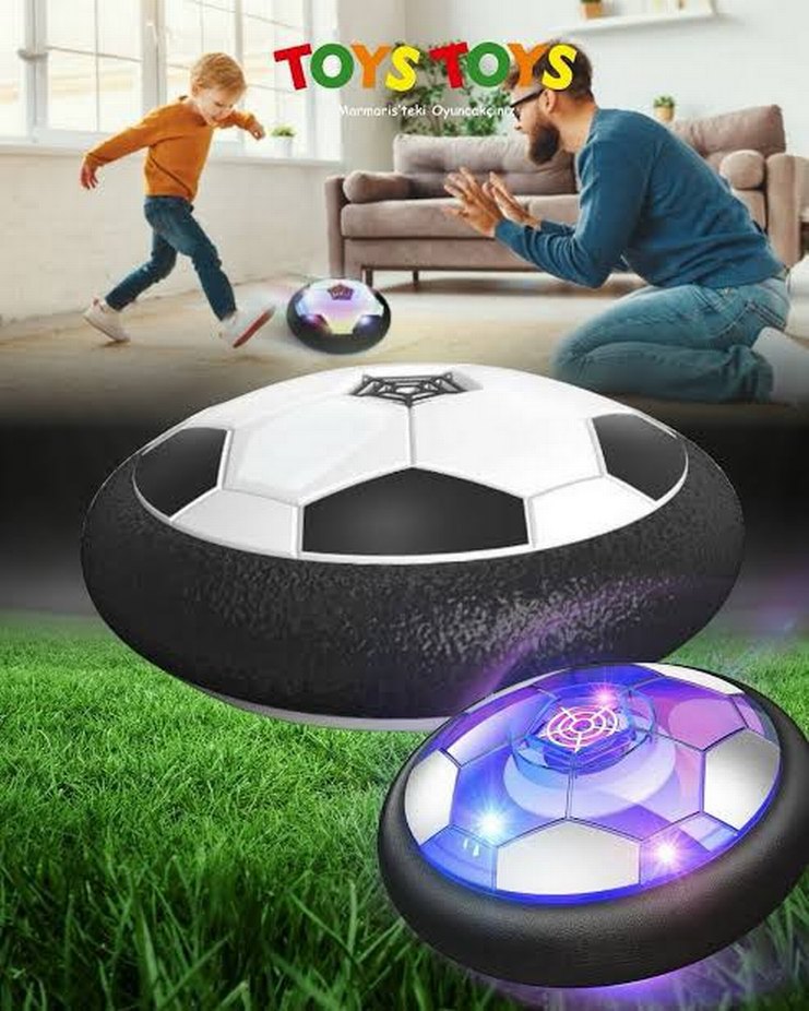 Renkli LED ışıklarla ve yumuşak köpük tamponla iç mekanlarda kullanılabilen, zeminde süzülen hover futbol topu oyuncağı ⚽️.