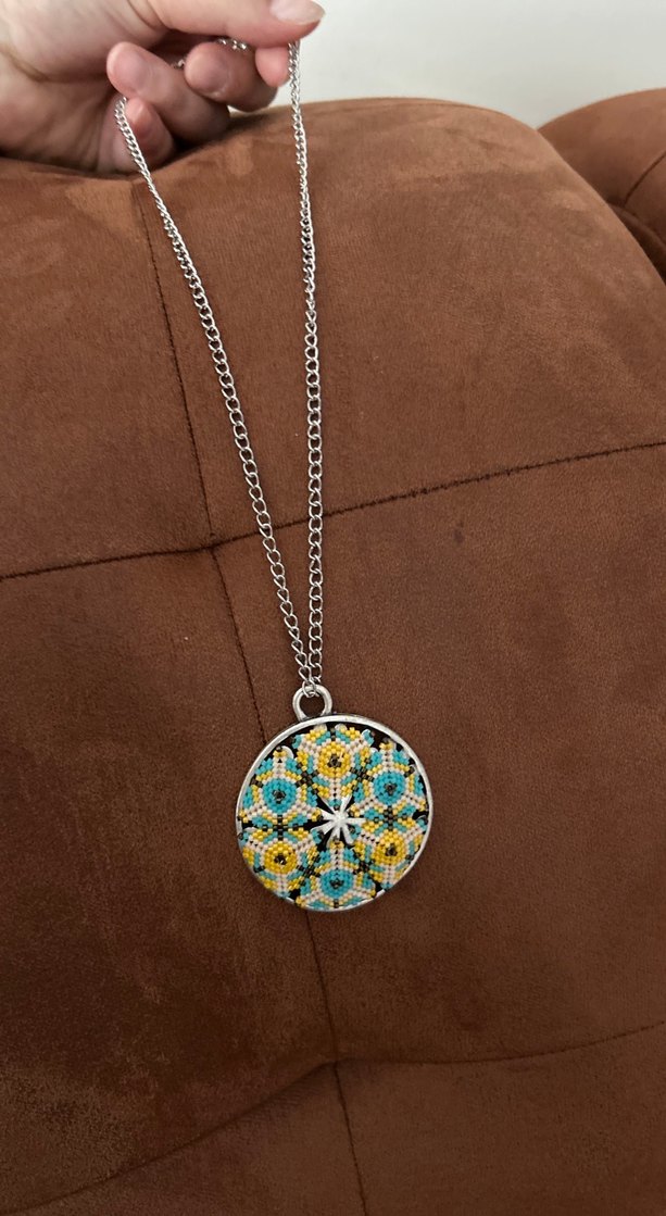 Renkli işlemeli ve boncuk detaylı, uzun bohem tarzda kolye. Günlük kullanım için uygun. Miyuki örgü özel tasarım