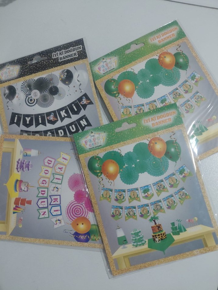 "İyi Ki Doğdun" yazılı, balon ve süslemelerle renkli doğum günü parti afişleri . Unicorn Temalı Uzay Temalı Safari Temalı