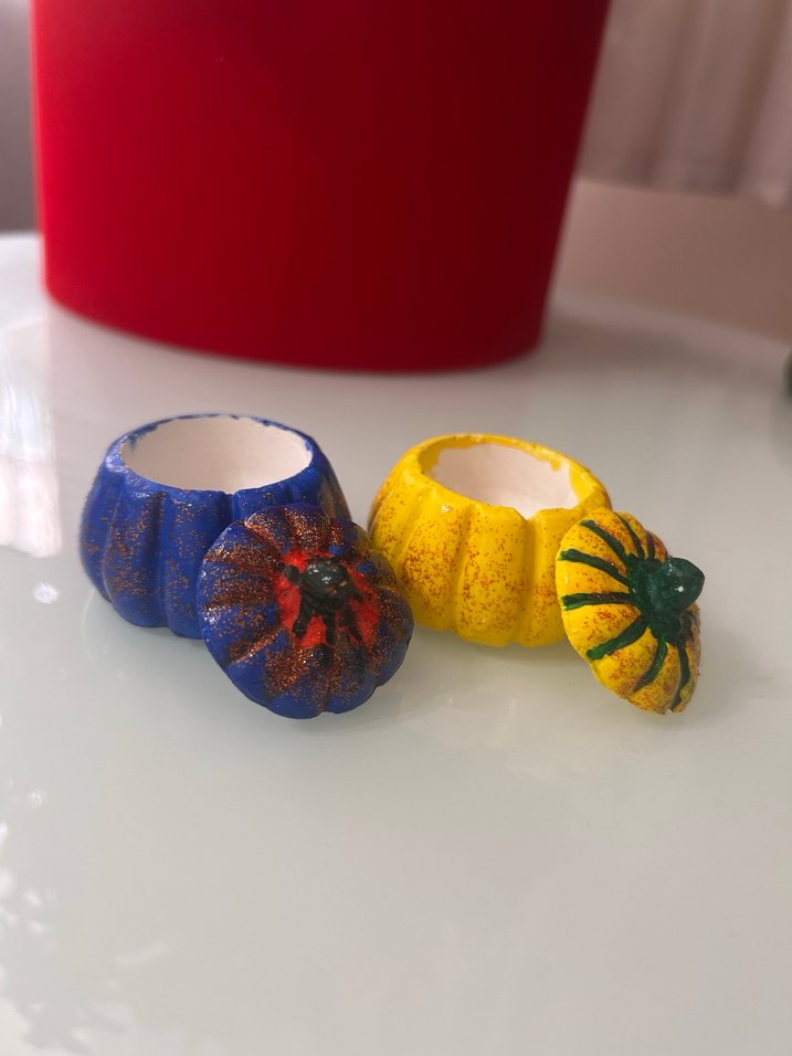 Mavi ve sarı renklerde, kabak şeklinde iki renkli Sunumluk seti, dekorunuza şık bir dokunuş katar.