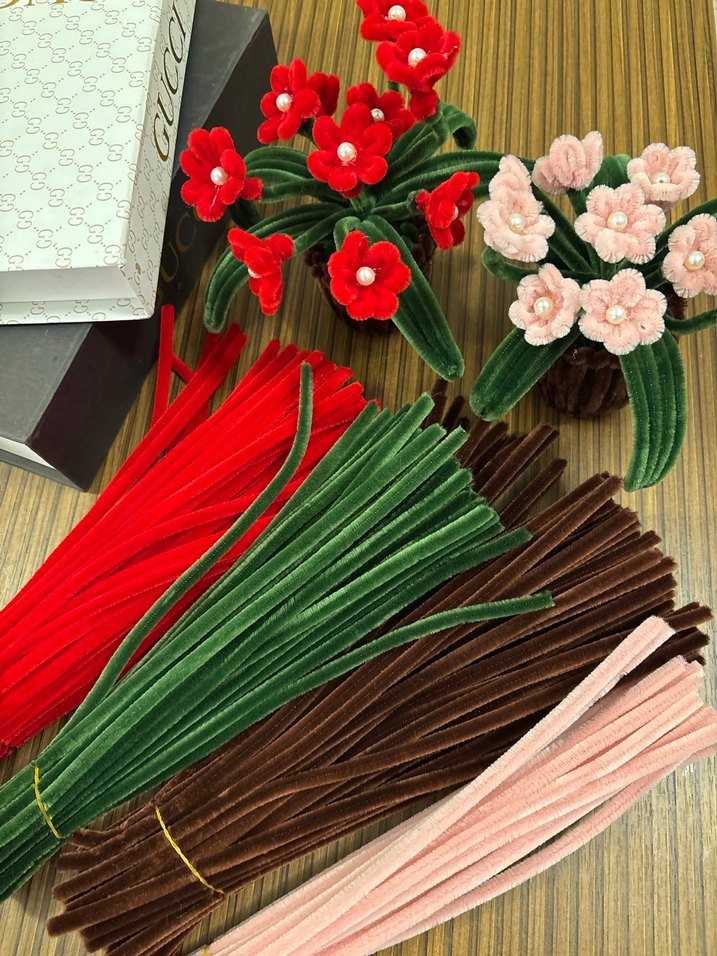 Renkli Kadife Tel Çiçek Seti