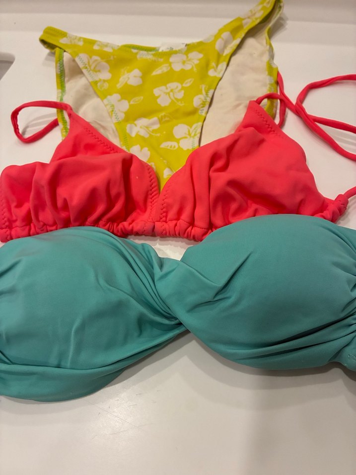 Bu kadın bikini takımı, ipli ve sıkı oturan üstlere sahip, canlı çok renkli tasarımıyla sahil için cesur ve zahmetsiz şıklık sunar.iki üst diğeri alt bilini