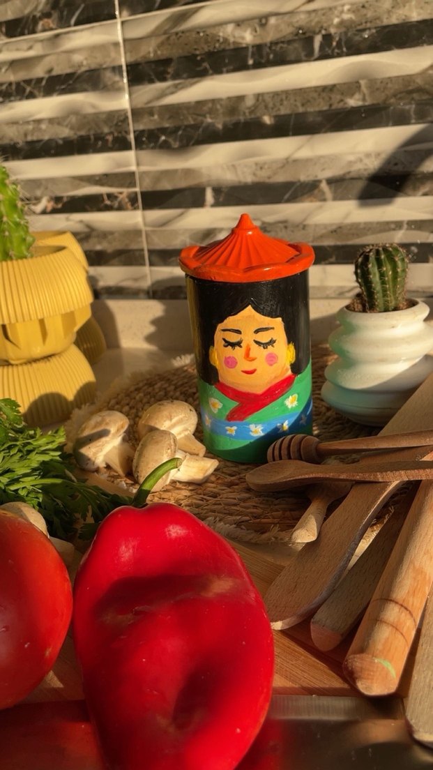Kırmızı şapkalı ve çiçek detaylı renkli kadın figürlü dekoratif biblo. Her mekana canlılık katar. Özel tasarımdır