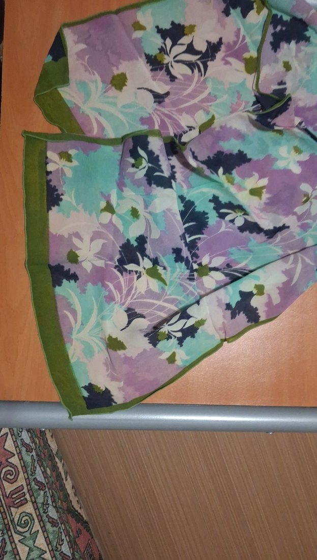 Bohem tarzda, yumuşak sentetik kumaştan yapılmış, çok renkli pastel çiçek desenli ve drapeli kadın fular.