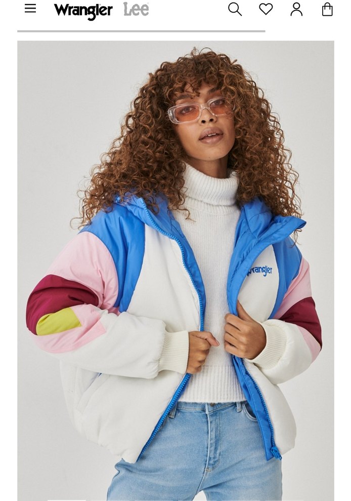 Kadınlar için fitted kesim, uzun kollu, fermuarlı kış kabanı. Beyaz ve pastel renklerde tie-dye desenli, kapüşonlu ve yumuşak kumaşlı. Sıcak tutuyor. #Wrangler #kaban