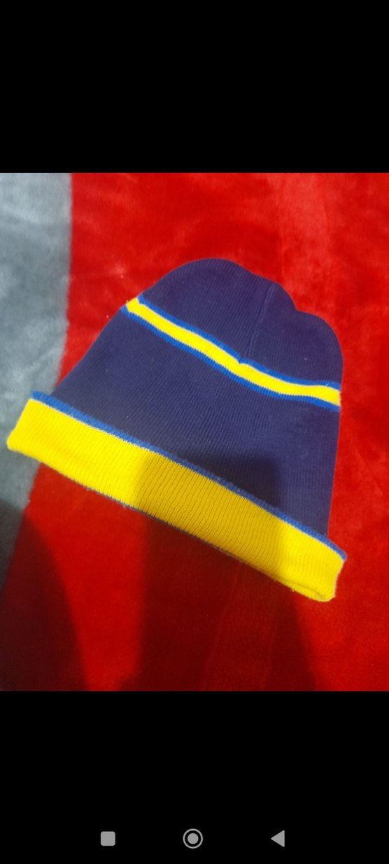 Renkli, örgü kadın bere, mavi ve sarı tonlarda yumuşak ve sıcak kumaşa sahip, rahat sokak stili için ideal. en fazla üç dört defa kullanıldı sorunsuz bere sağlamdır Fenerbahçeli isteyene şalda mevcuttur taraftar takım