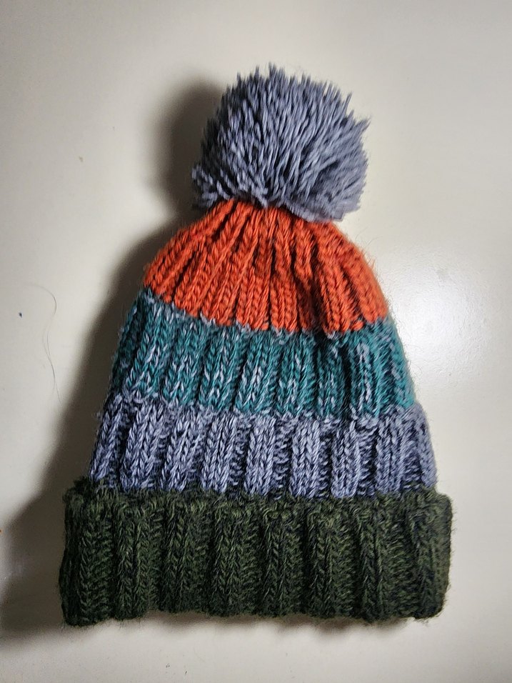 Kadınlar için renkli örgü çizgiler ve yumuşak ponponlu, rahat ve bohem tarzda bere.