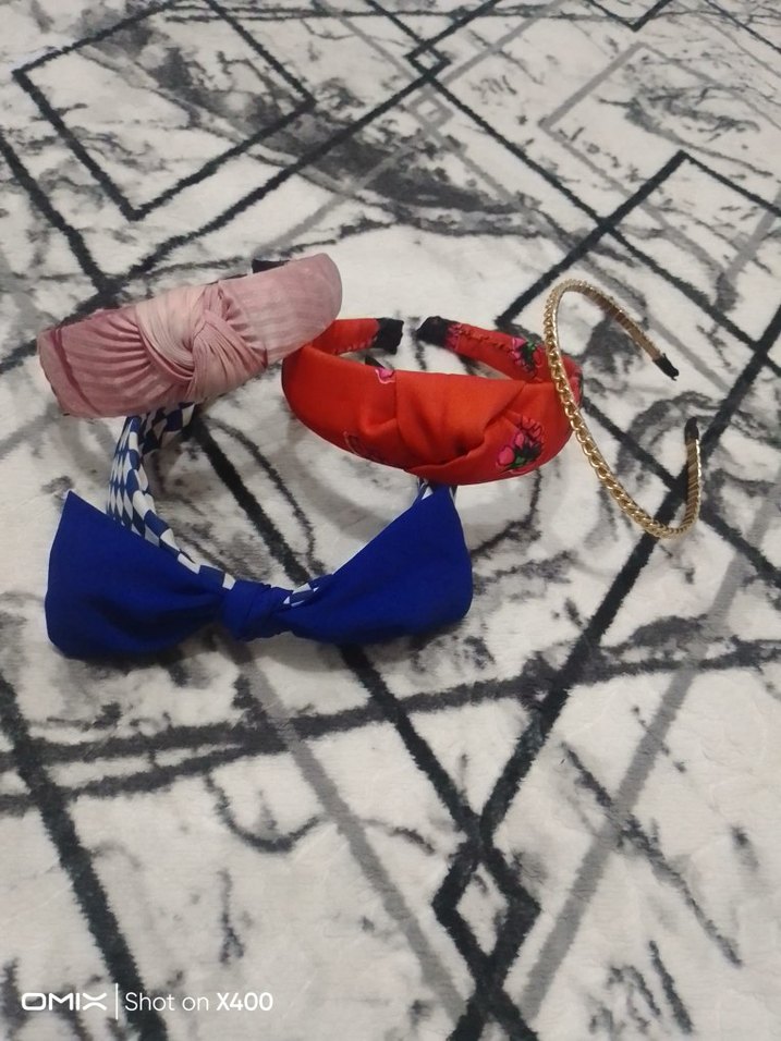 Sentetik kumaştan yapılmış, fiyonk detaylı, renkli kadın saç aksesuarları. Paris sokak modasına uygun tarzda.