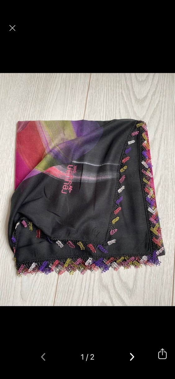 Kadın şal, koyu renkli çok renkli desenli, dökümlü ve süslü kenarlıklıdır. Sentetik kumaştan yapılmış, bohem ve retro tarzı yansıtır. İğne oyası yazma #eşarp #yazma #elişi #iğneoyası #tığ #siyah #dantel #çeyiz #damat #bohça #gelin #kadın