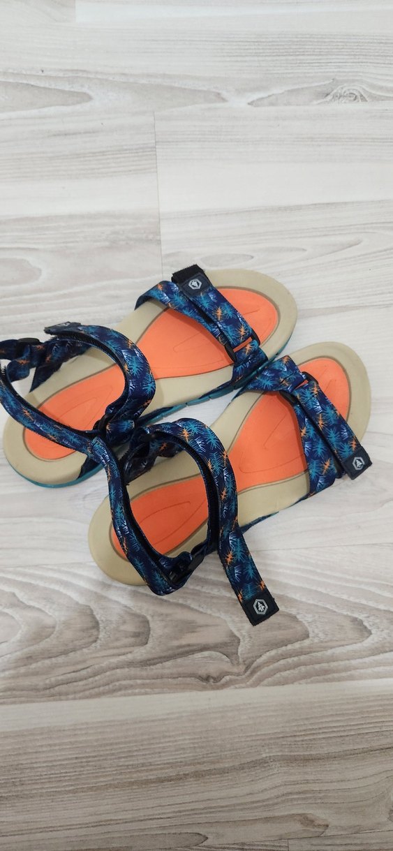 cırt cırtlı, renkli tie-dye desenli kadın spor sandaletler. Dayanıklı kauçuk malzemeden üretilmiştir, dış mekan ve sokak stili için uygundur. 2 defa giyildi.